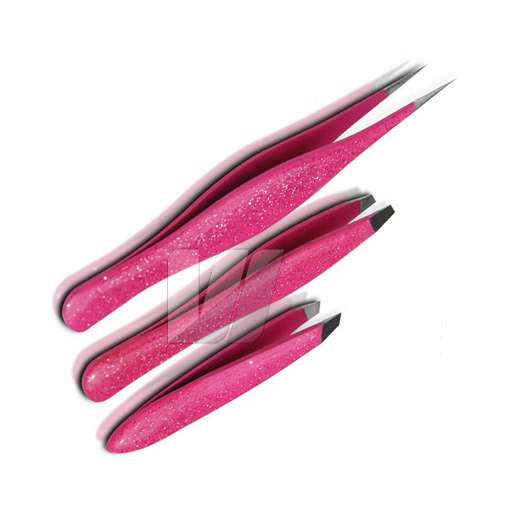 แหนบคิ้วสเตนเลสแบบมืออาชีพเคลือบกากเพชรสีชมพูพร้อมโลโก้ตามสั่งผลิตภัณฑ์คุณภาพสูง