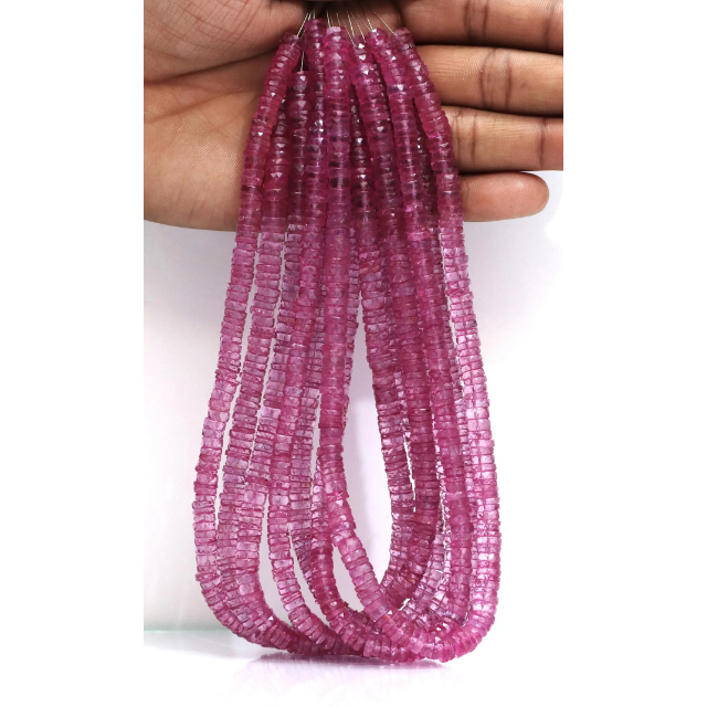 ลูกปัดควอตซ์สีรุ้งชมพูสดแบบรอนเดลล์ เกรด AAA สำหรับทำเครื่องประดับ (7-8 มม.)