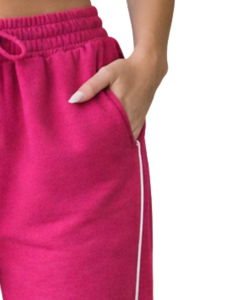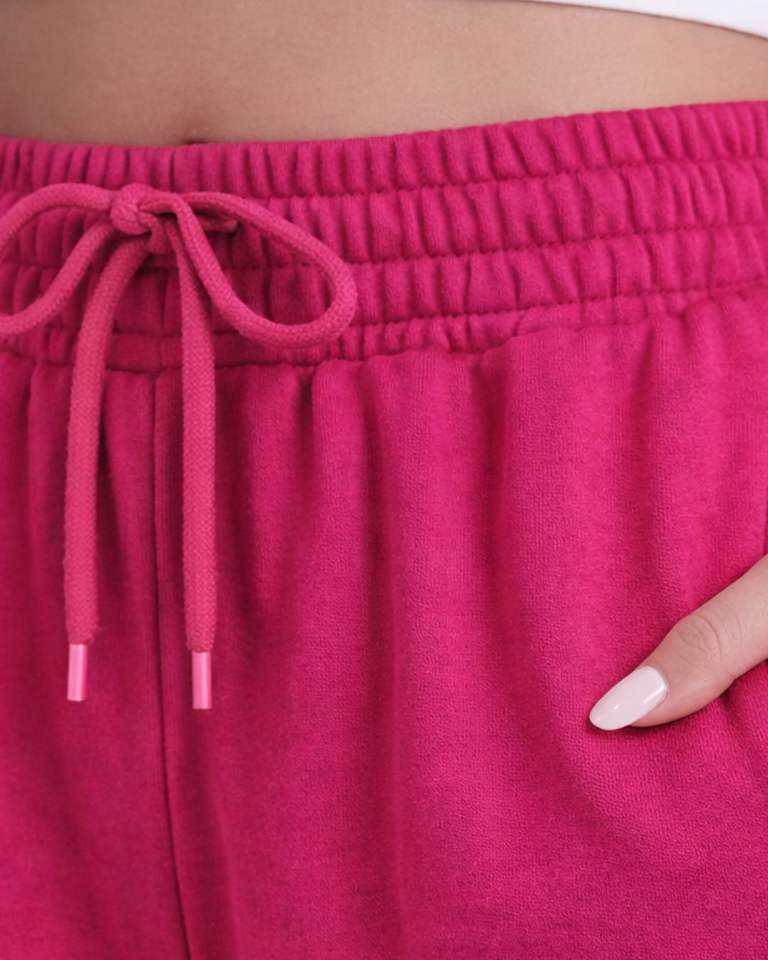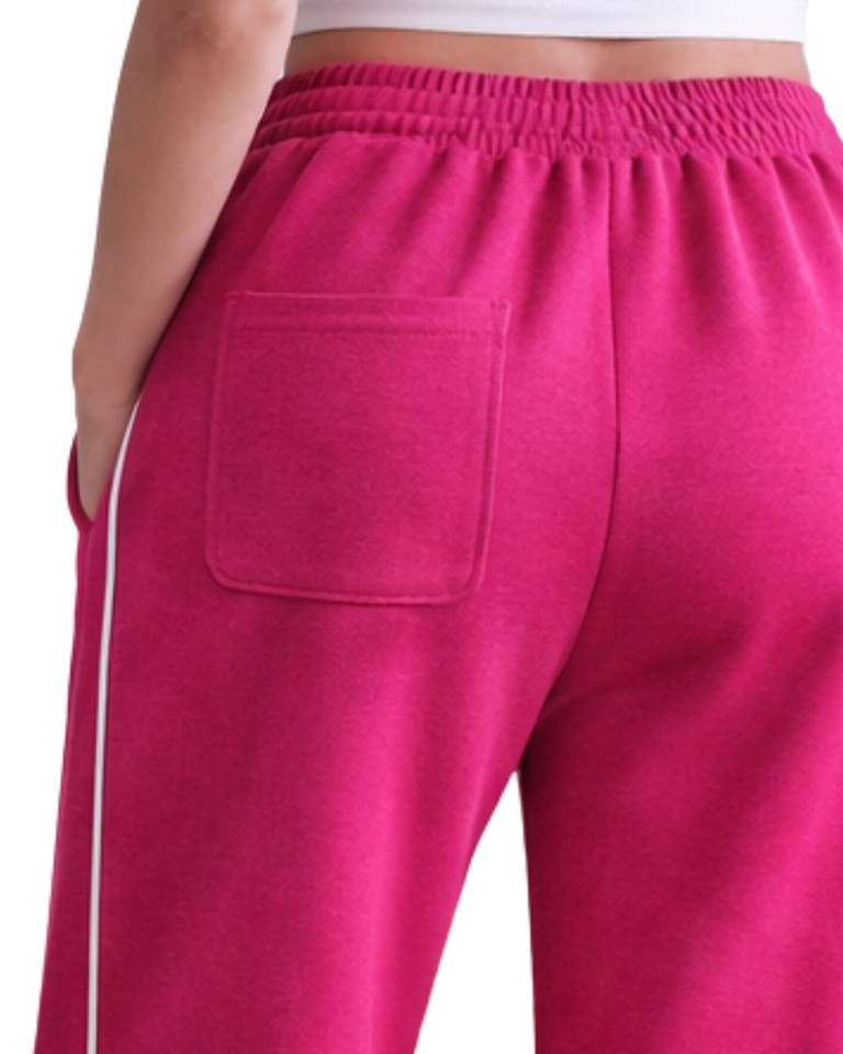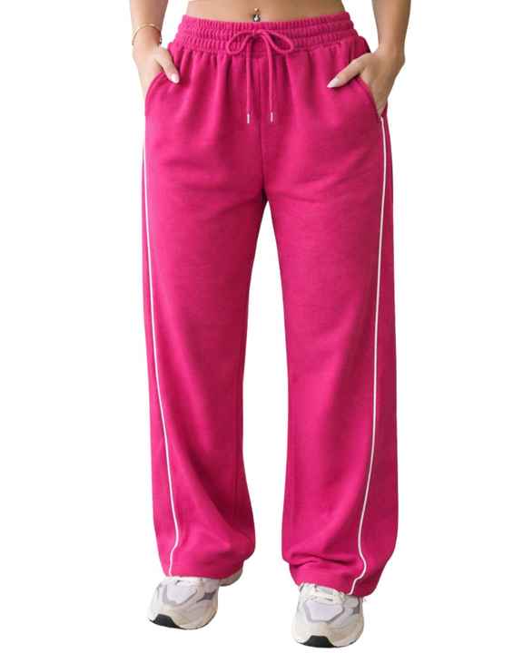 กางเกงวอร์มขายาวสีชมพูสดสำหรับผู้หญิง ขอบเอวยางยืด มีเชือกผูกเอว ทรงหลวม สวมใส่สบาย เหมาะสำหรับพักผ่อน