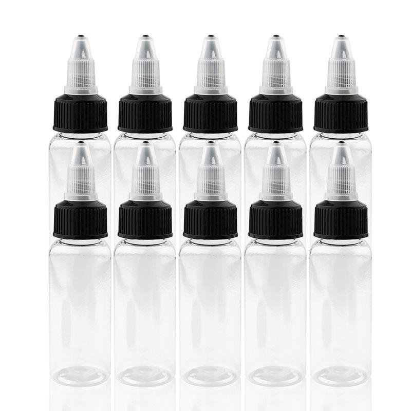 ขวดหยดน้ำพลาสติก PET ทรงฝาเกลียวสำหรับบรรจุหมึกสักลาย