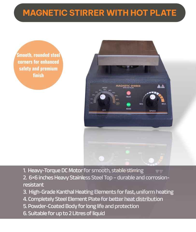 เครื่องกวนสารแม่เหล็กแบบแผ่นร้อน MAYALAB สำหรับใช้ในห้องปฏิบัติการเคมี | แผ่นสแตนเลส | ปรับความเร็วความร้อนได้ | 2 ลิตร