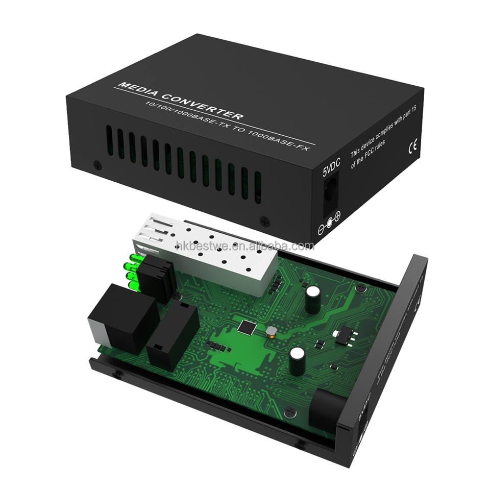 ตัวแปลงสัญญาณไฟเบอร์ออปติกแบบพอร์ตเดียว SFP 10/100/1000Base-TX เป็น 1000Base-FX ยอดนิยม