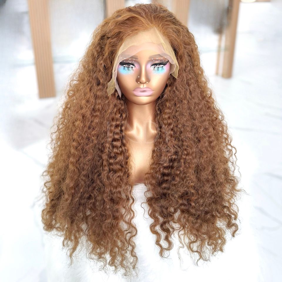 วิกผม100% แท้แบบชาวพม่าวิกผมแท้มีลูกไม้ HD สีน้ำตาลหยิก