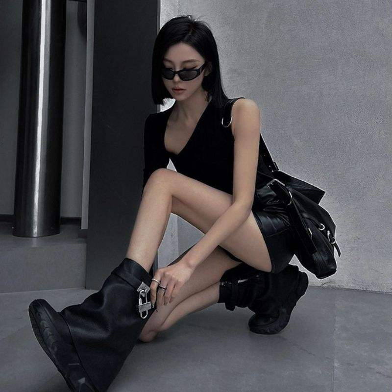 สินค้าขายดี รองเท้าบูทสั้นผู้หญิง รุ่น Shark Lock ส้นแบบลิ่ม