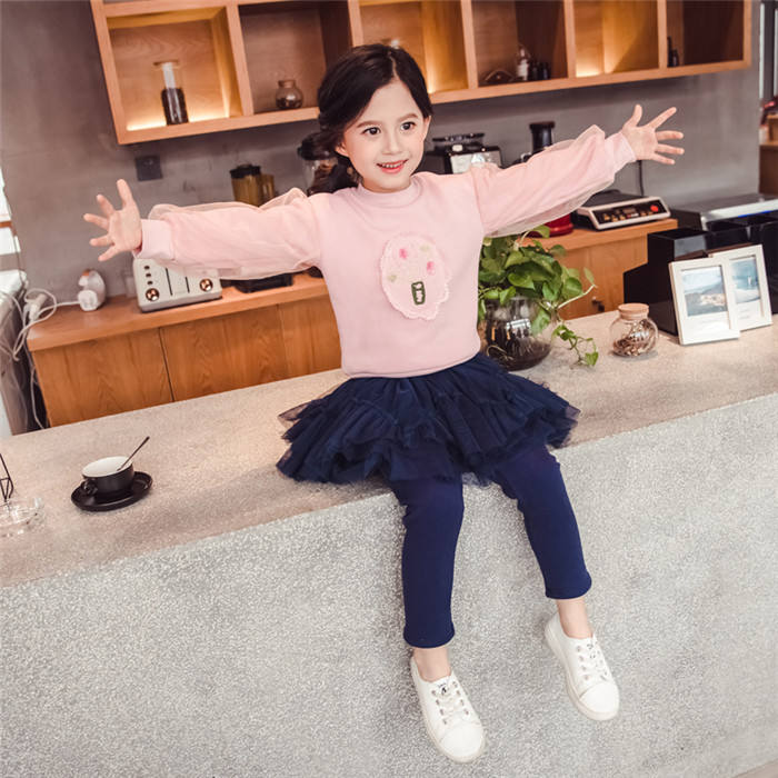 สินค้าขายดี เสื้อผ้าเด็ก ชุดเสื้อยืดและกระโปรงเลกกิ้งผ้าฝ้ายสำหรับเด็กผู้หญิง คอลเลคชั่นฤดูใบไม้ร่วง