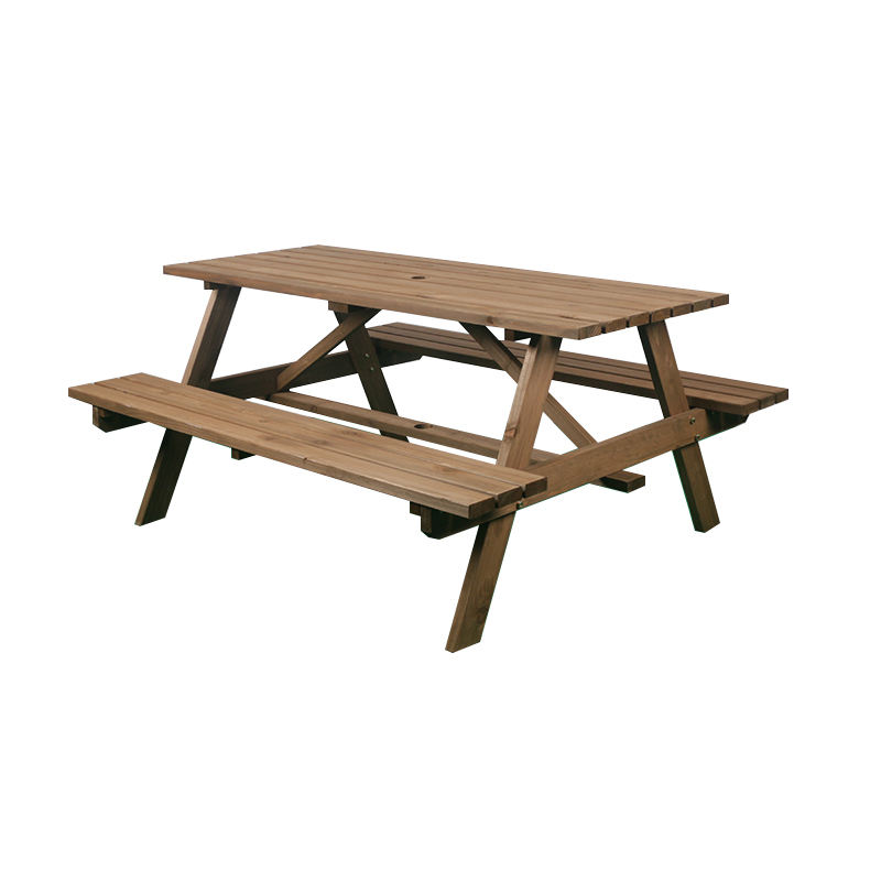โต๊ะและม้านั่งปิกนิกทำจากไม้เฟอร์สำหรับสวนแบบเรียบง่ายทนทาน