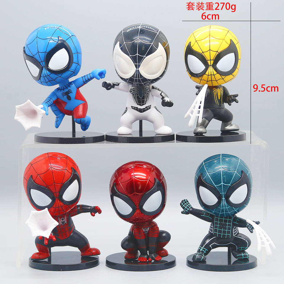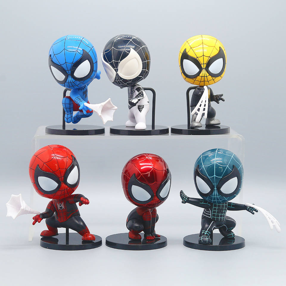 ฮอต คิว เวอร์ชั่น ชุดฟิกเกอร์อนิเมะแบบหัวโยก - 6 ตัวละครฮีโร่แมงมุมสีเมทัลลิก สำหรับตกแต่งเค้กและโต๊ะทำงาน
