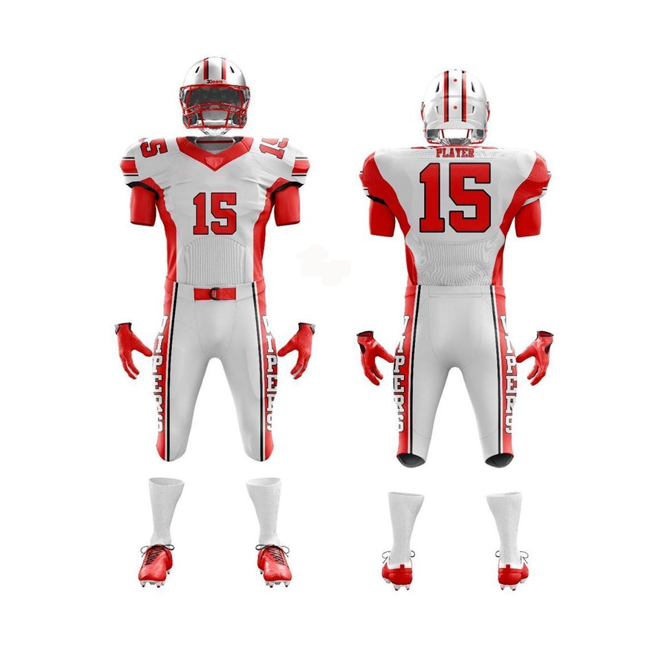 ชุดฟุตบอลอเมริกันแขนสั้นผู้ชายเสื้อเจอร์ซีย์ผ้าทวิลที่มีชื่อและจำนวน