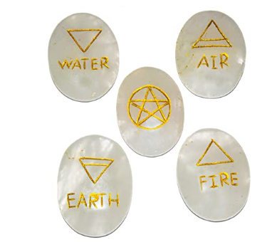 หินสลักที่มีคุณภาพสูง Selenite ขายส่งจำนวนมากพร้อมชุดสัญลักษณ์ Pagan Wiccan: อากาศ,ไฟ,น้ำ,โลก