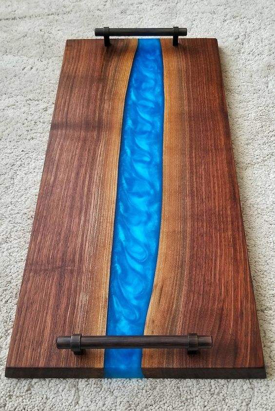 Hot Rectangle Wood & Resin Serving Tray Wholesale Custom Logo Ecofriendly Serving Board Tray Made in India Uttar Pradesh Country