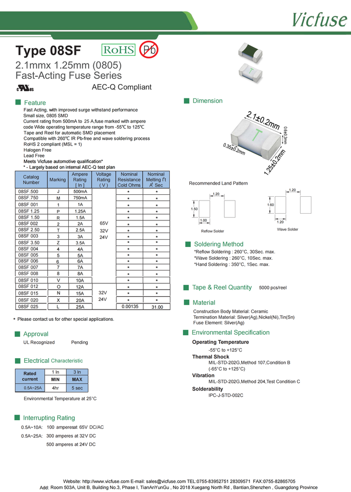 Construction Body Material:Ceramic, Termination Material: Silver(Ag),Nickel(Ni),Tin(Sn, Fuse Element: Silver(Ag)วัสดุ