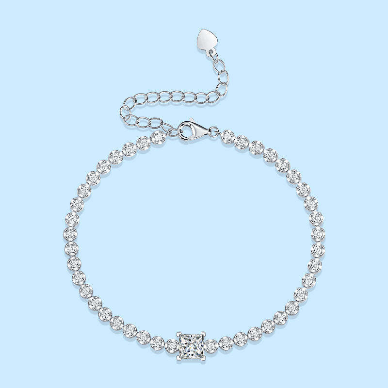 สร้อยข้อมือเพชรโมอิสเพชร1กะรัตสำหรับผู้หญิงสร้อยข้อมือแบบปรับแต่งได้กำไลข้อมือเงินแบบคลาสสิก