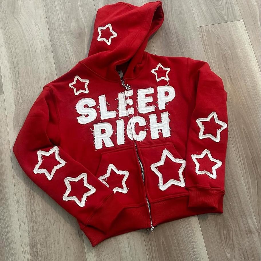 เสื้อฮู้ดดี้หนานุ่มสำหรับผู้ชาย ผ้าฝ้าย 100% ปักลายดาว โลโก้สั่งทำ ผ้าเฟรนช์เทอร์รี่ เป็นมิตรต่อสิ่งแวดล้อม ทรงหลวม ซิปยาว ลายจุด สำหรับฤดูใบไม้ร่วง ลดราคาพิเศษ
