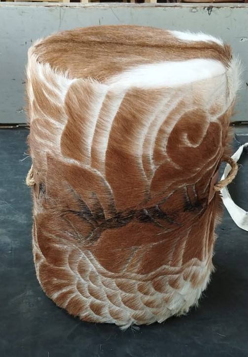 ลดกระหน่ำเก้าอี้โซฟาหนังวัวแพะแกะสลักแบบกำหนดเอง100% เก้าอี้นั่งเล่นแบบสี่เหลี่ยมทำด้วยมือระเบียงห้องโมเดิร์น