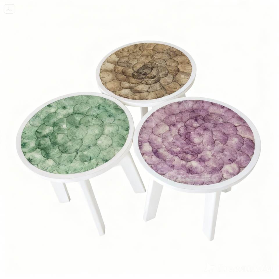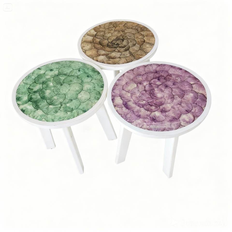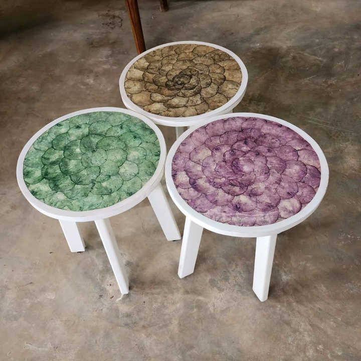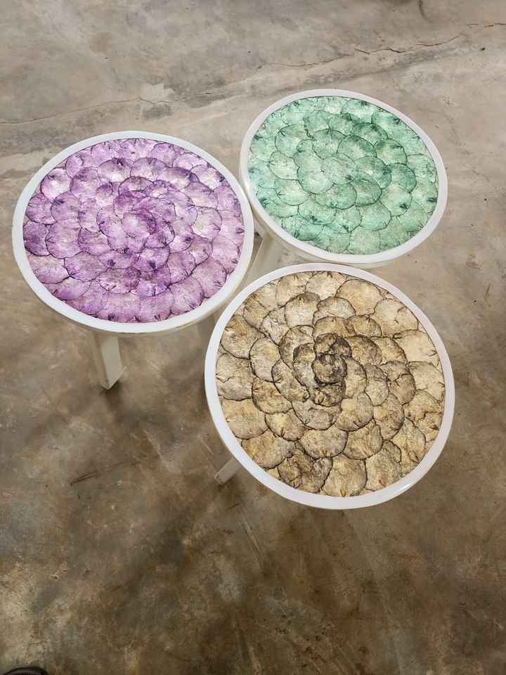 ลดราคา! ของแท้ 100% ผลิตในอินโดนีเซีย โต๊ะกาแฟมุมทรงมินิมอล ทำมือจากเรซิ่นและไม้ พร้อมโครงไม้และฝาปิดเปลือกหอย สำหรับตกแต่งบ้าน
