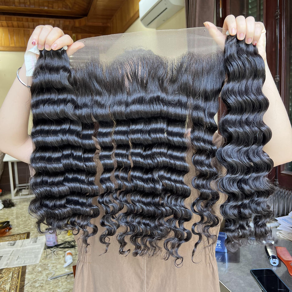ผมต่อของมนุษย์เวียดนาม100% คลื่นน้ำลึกสีดำธรรมชาติย้อมสีได้มีทุกสียาว6-36นิ้ว