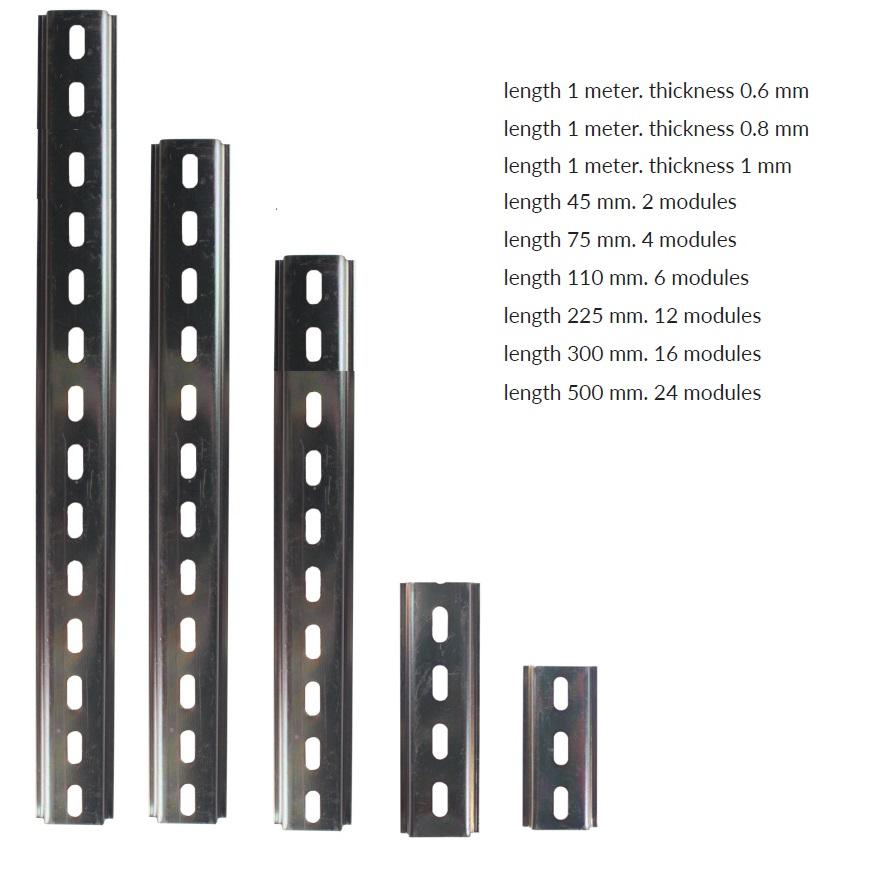 รางเหล็กชุบสังกะสีขนาด110มม. 6โมดูลความหนา0.9มม. สำหรับกล่องกระจายสินค้าและอุปกรณ์แรงดันไฟฟ้าต่ำ