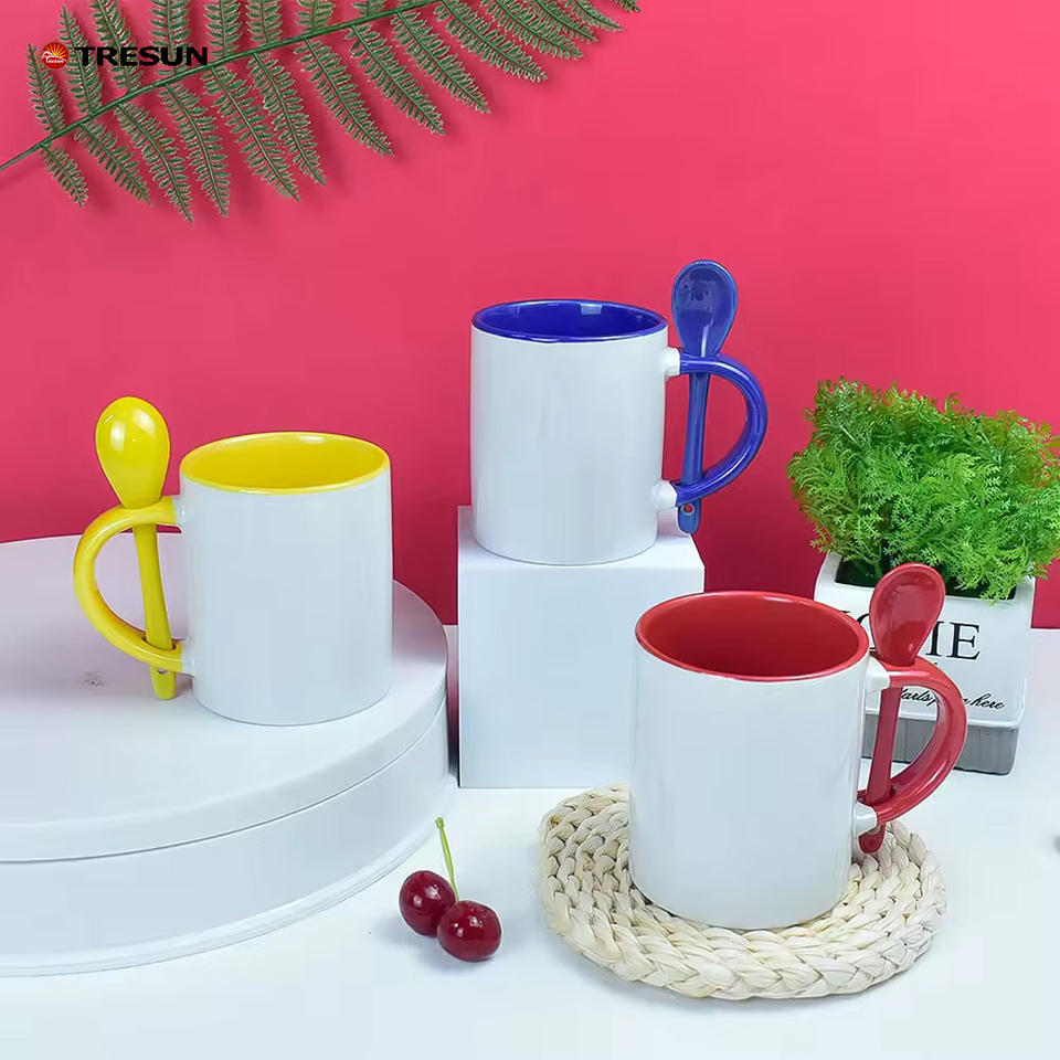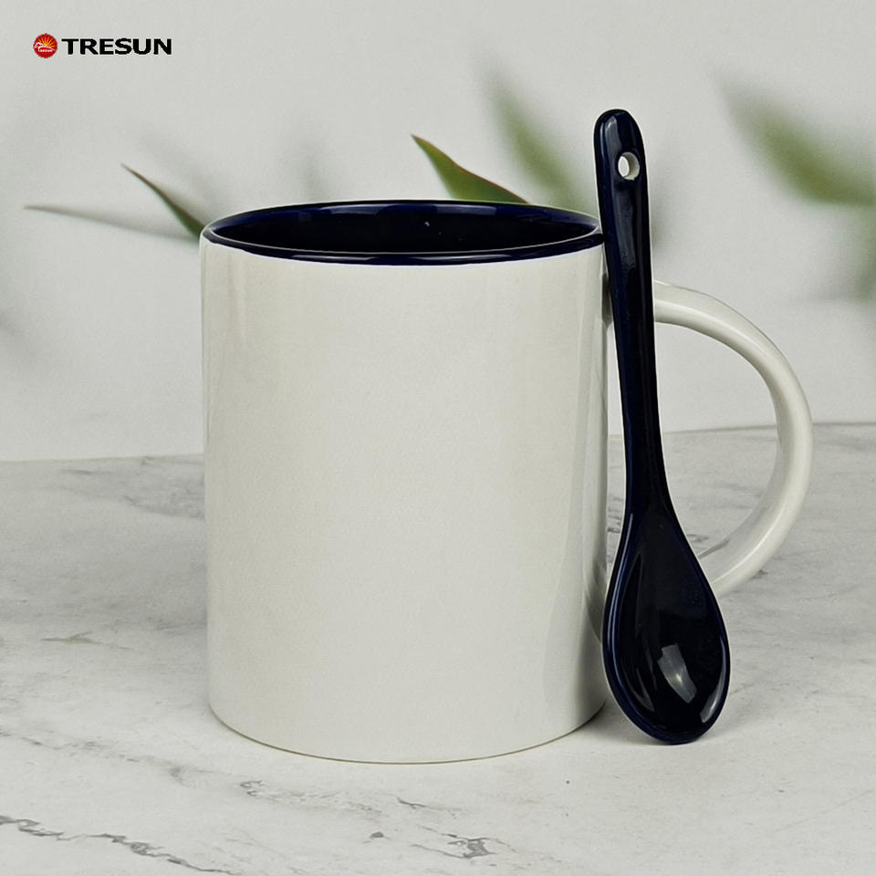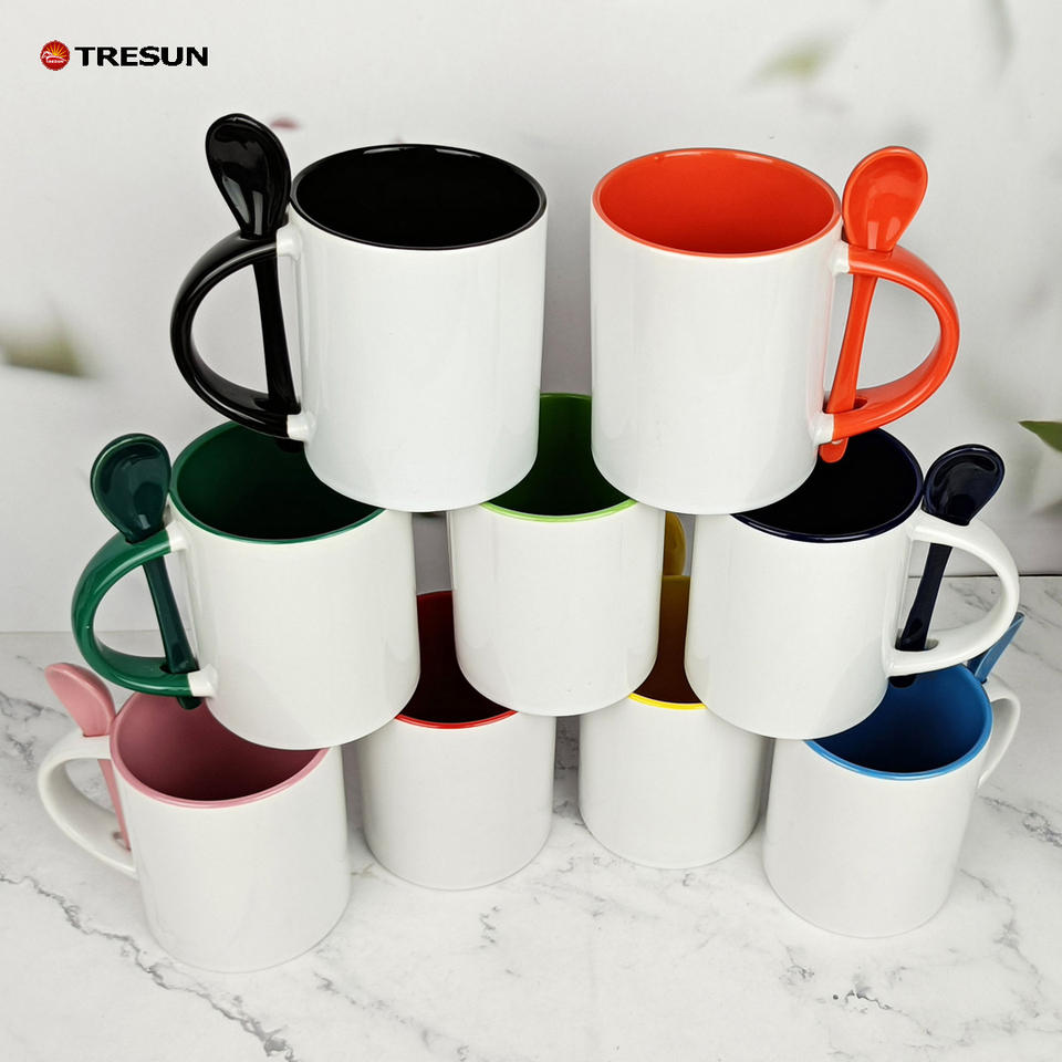 ถ้วยกาแฟเซรามิกพร้อมช้อนสีเปล่าขนาด11ออนซ์สั่งได้ตามต้องการ