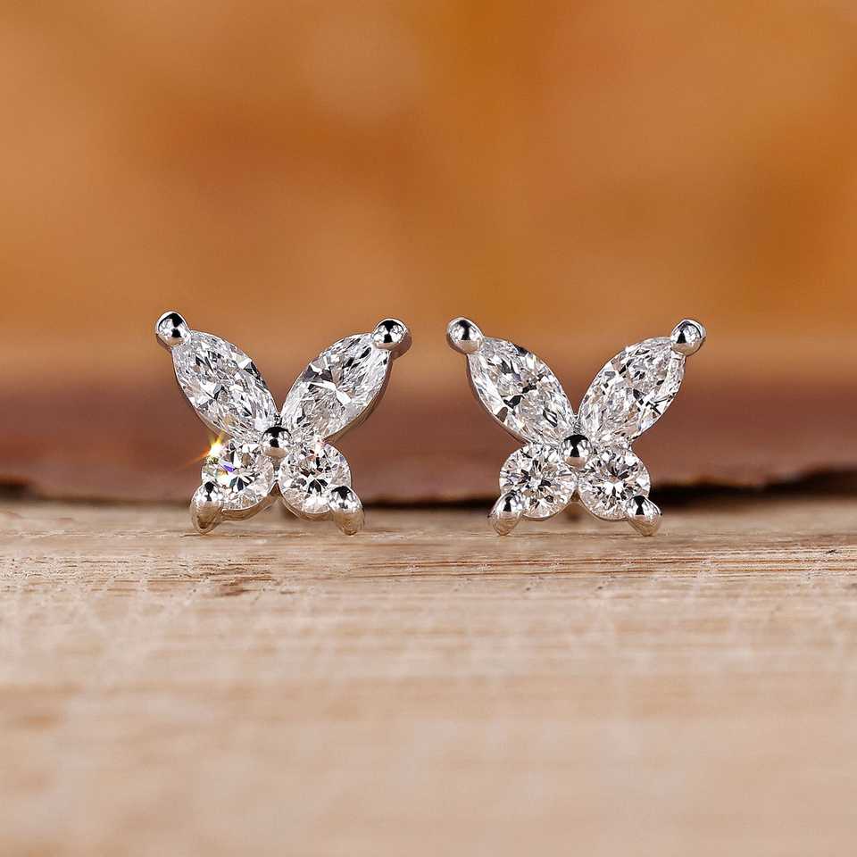 ต่างหูเพชรทรงผีเสื้อและทรงกลม 18K ทองคำขาว ประดับเพชรเลี้ยงในห้องปฏิบัติการ ลดราคาพิเศษ พร้อมจำหน่ายในราคาที่แข่งขันได้