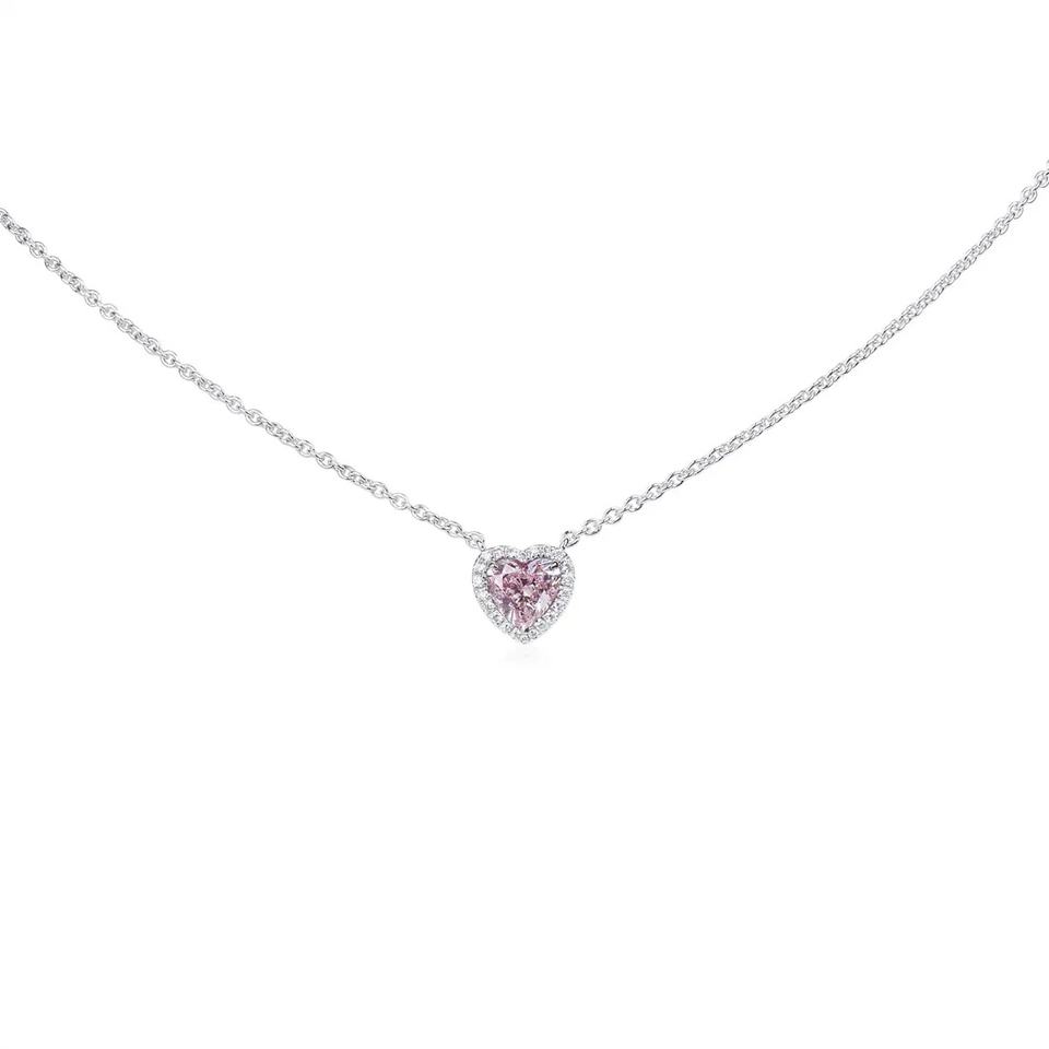 สร้อยคอทองคำขาว 18K ประดับเพชรรูปหัวใจสีชมพูธรรมชาติ ดีไซน์หรูหราสำหรับผู้หญิง เหมาะเป็นของขวัญงานแต่งงาน