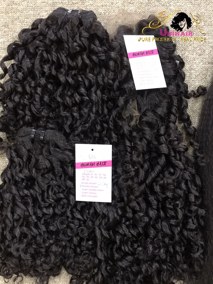 Full Cuticle Aligned Pixie Curl ดิบ Weft กัมพูชาผม