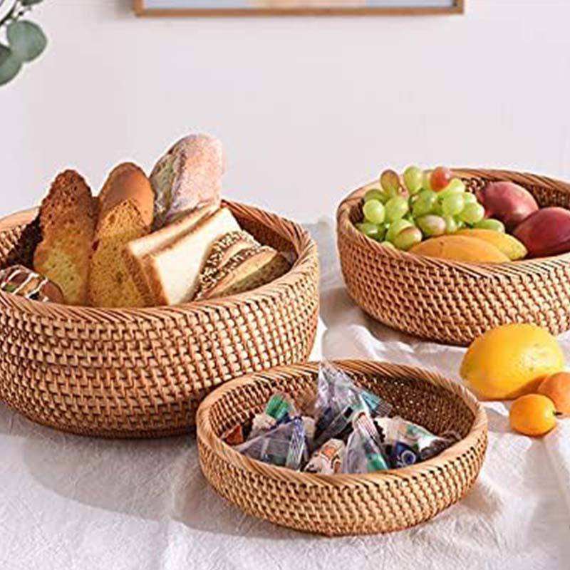 ตะกร้าหวายสานด้วยมือใส่2025อุปกรณ์จัดระเบียบสำหรับห้องรับประทานอาหารขายดี