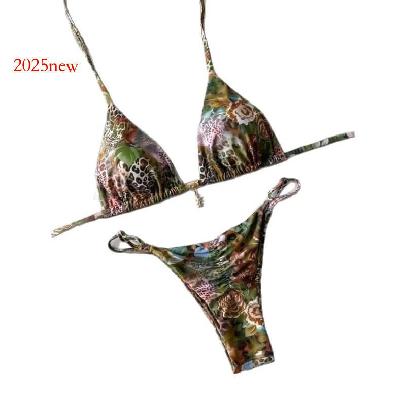 ชุดว่ายน้ำบิกินี่เว้าหลังของผู้หญิงพิมพ์ลายเซ็กซี่สำหรับ2025ใหม่