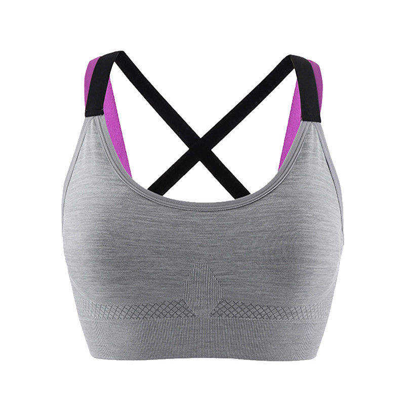 ลดราคาสุดฮอต 2026 เสื้อชั้นในกีฬาสำหรับผู้หญิง โยคะ ฟิตเนส ออกกำลังกาย ระบายอากาศได้ดี มีโลโก้ด้านหน้า ไร้ตะเข็บ เสริมฟองน้ำ