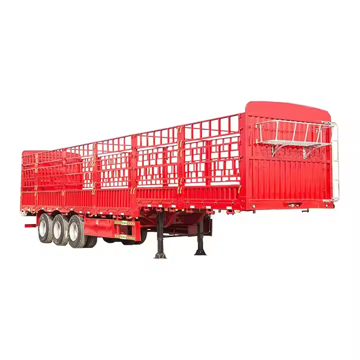 รถบรรทุกพ่วงแบบมีรั้ว 3 เพลา 12 ล้อ บรรทุกได้ 40-60 ตัน ราคาถูก สำหรับขนส่งสัตว์และสินค้า ลดราคาพิเศษ