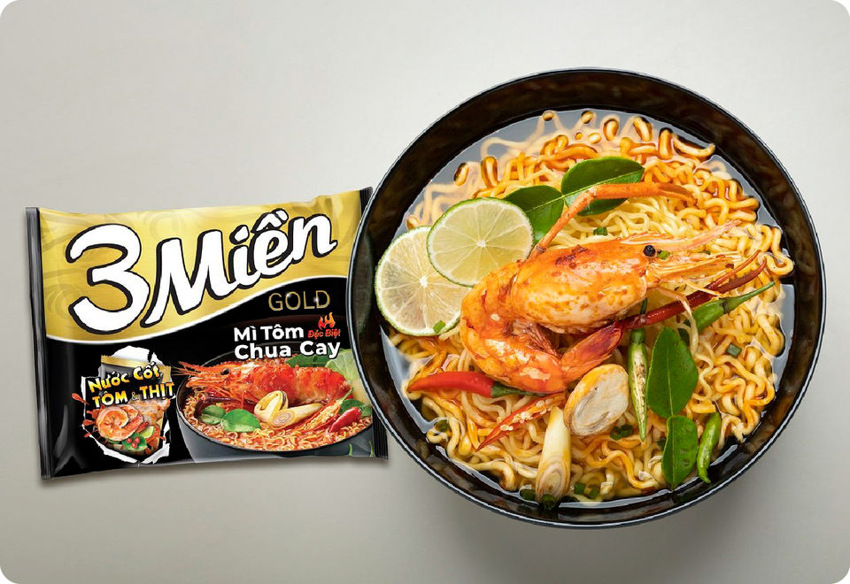 บะหมี่กึ่งสำเร็จรูป 3 มิเอ็น โกลด์ รสเนื้อตุ๋นสมุนไพร ยี่ห้อเวียดนาม บรรจุกล่อง 65 กรัม/ถ้วย ต้มสุกใน 2-3 นาที ลดราคาพิเศษ