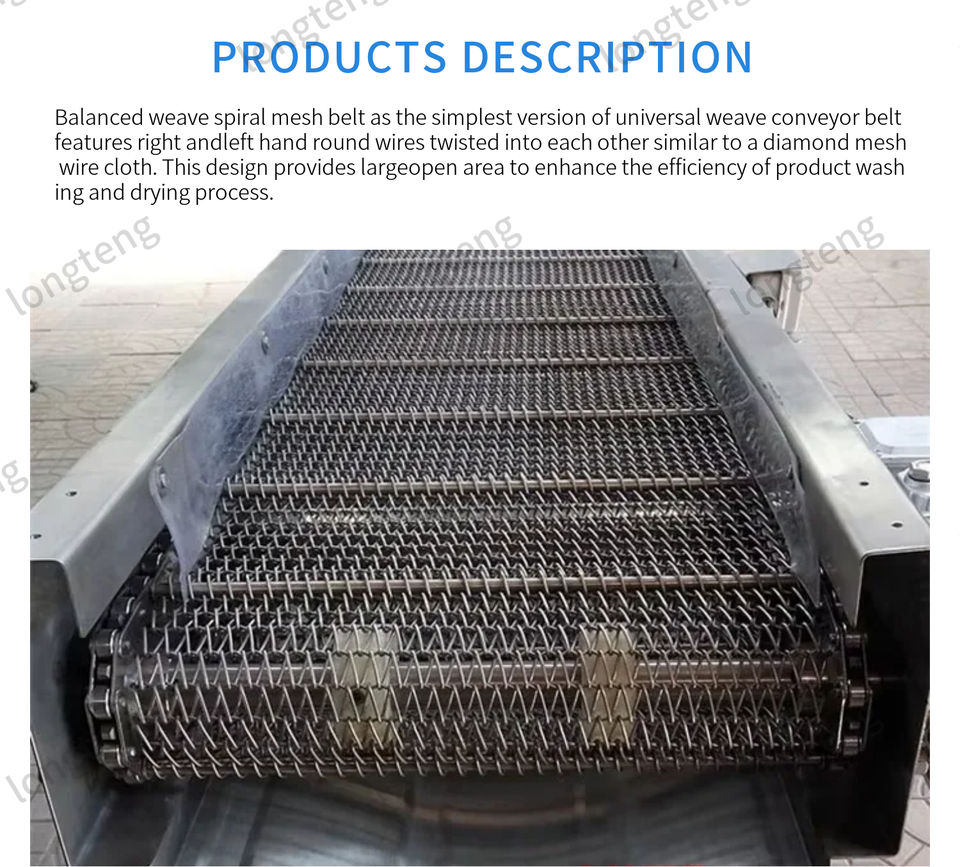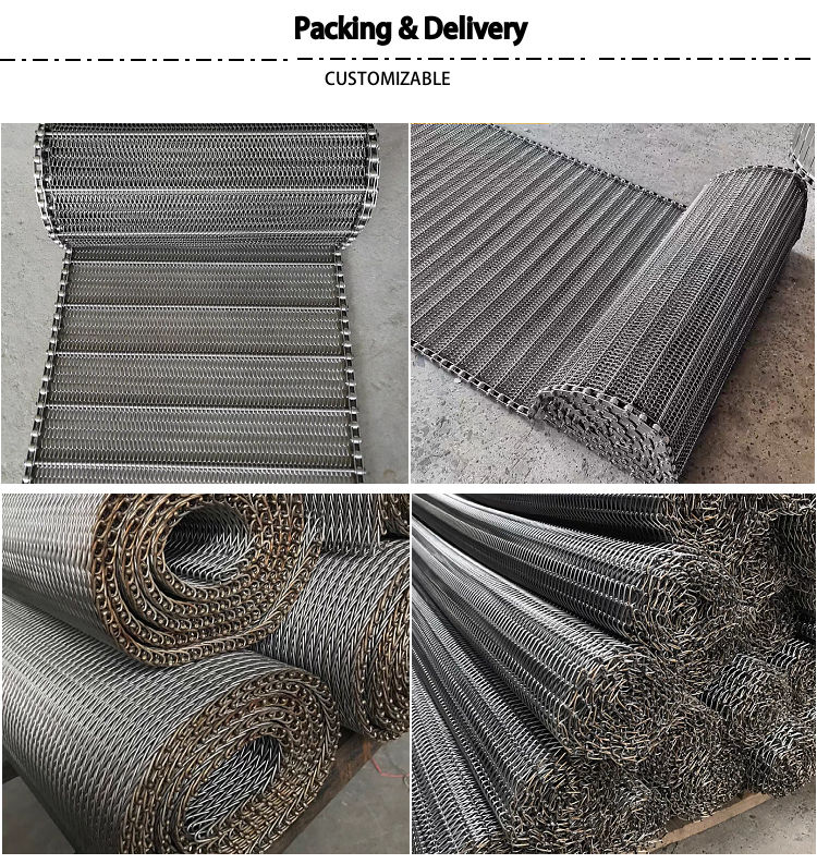 รูปร่าง:สายพานลำเลียงแบบตาข่ายลูกโซ่, ลายข้าวหลามตัด, แบบผ้ากันเปื้อน, สายพานตาข่ายทรงกลม