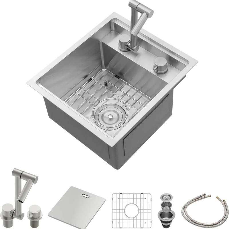 อ่างล้างจานครัวสเตนเลส 304 แบบอ่างเดี่ยว ผิวปัดเงา แบบติดตั้งบนเคาน์เตอร์ สำหรับครัวทันสมัย ลดราคาพิเศษ