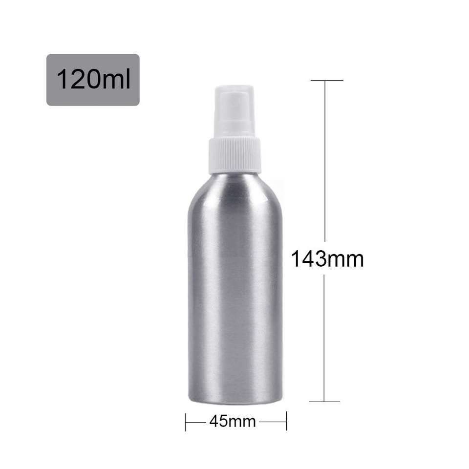 ขวดน้ำหอมอลูมิเนียมขนาด30มล. 50มล. 100มล. 120มล. 150มล. พร้อมฝาสเปรย์สายอลูมิเนียมสีเงิน