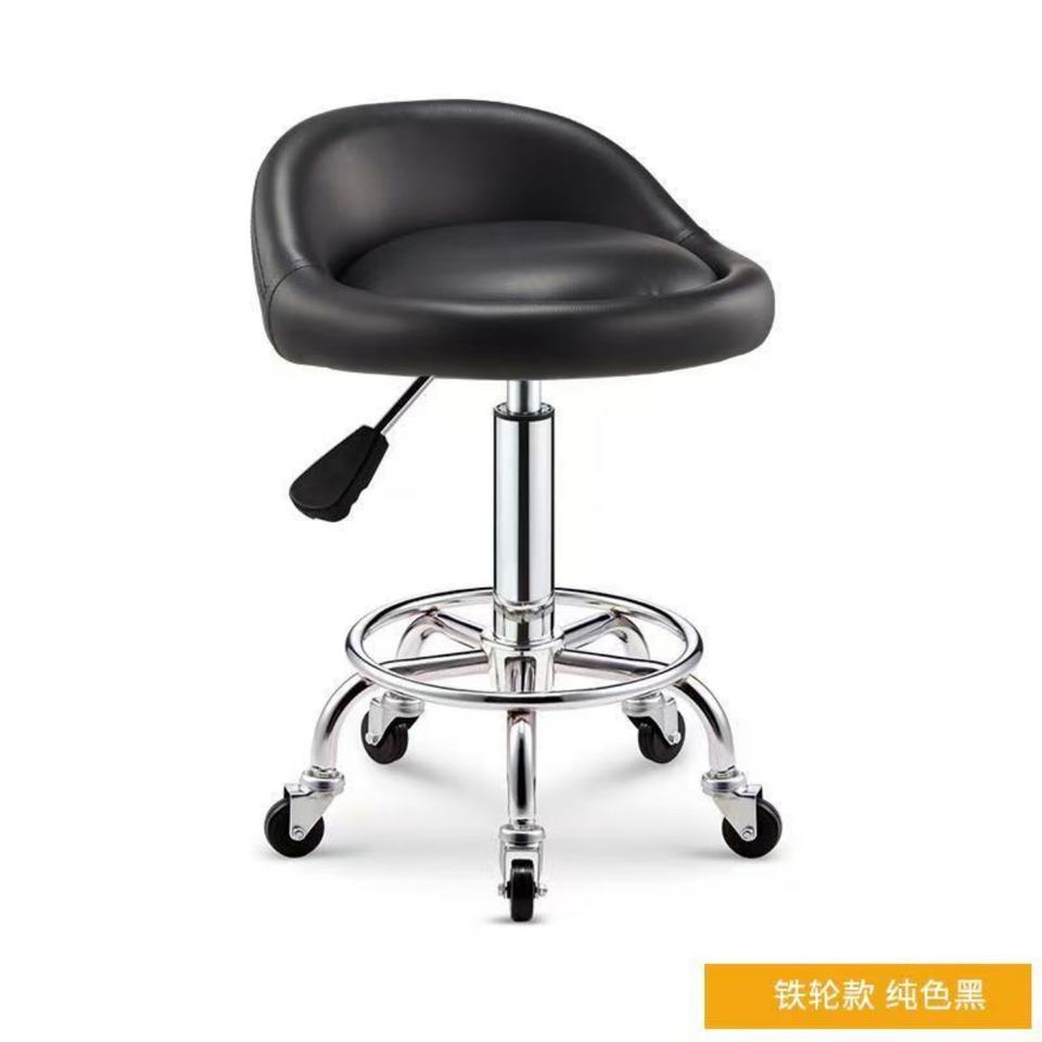 ลดราคา 360 ° เก้าอี้ตัดผมหนังหมุนได้ ปรับความสูงได้ พกพาสะดวก ทนทาน ทำความสะอาดง่าย สะดวกสบาย สำหรับร้านเสริมสวย ทำเล็บ