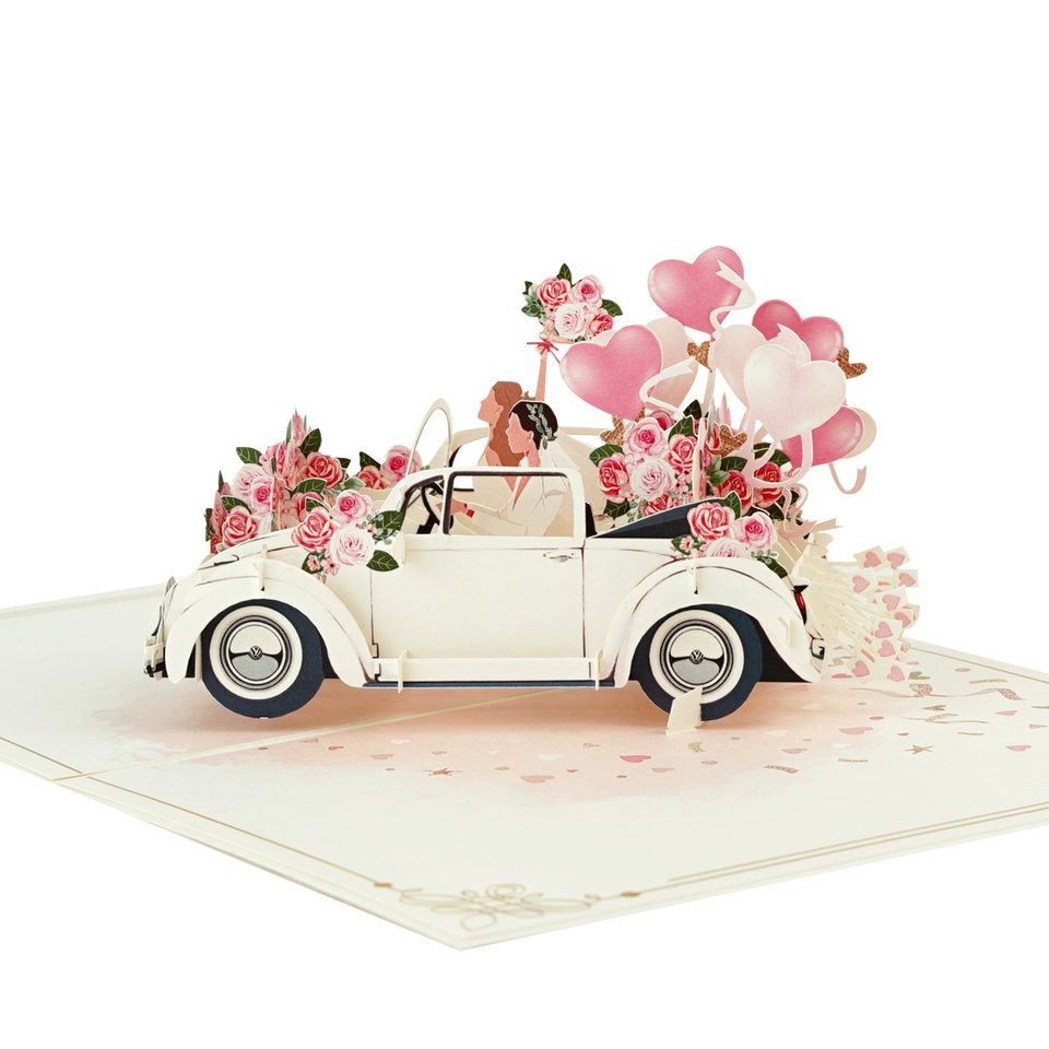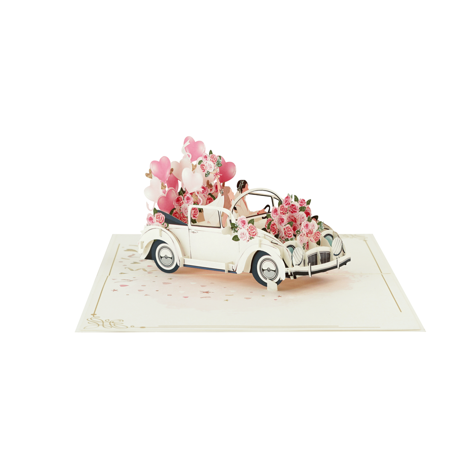 Hot Sale 3D Handicraft Wedding Car Popup Greeting Card Colorful Paper Design for Valentine's Day and Wedding Day