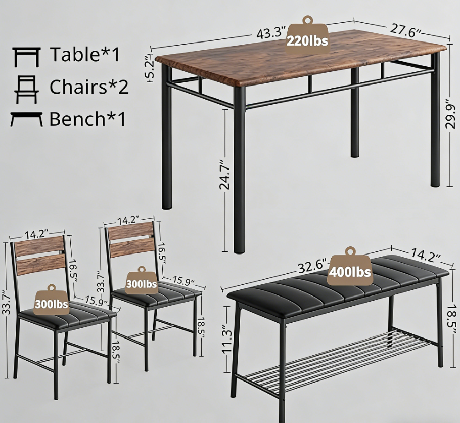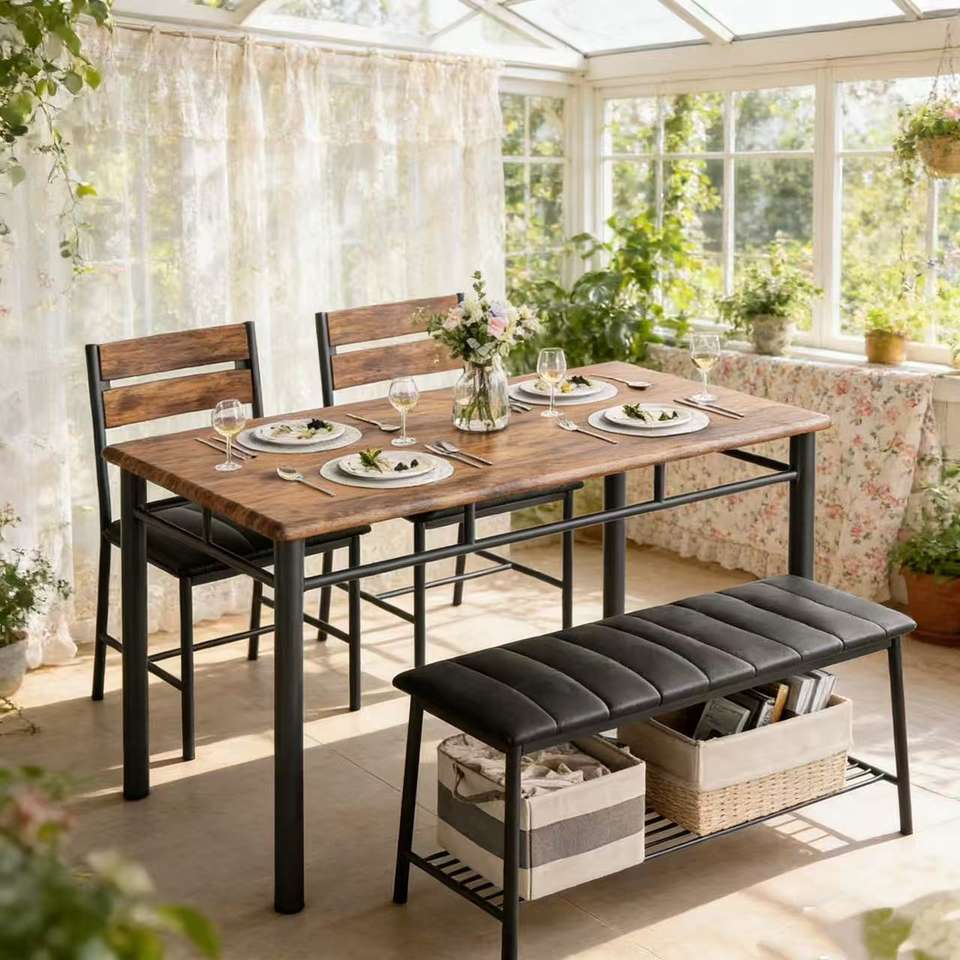 ชุดเก้าอี้ครัว 4 ตัว โครงเหล็กทรงสี่เหลี่ยม พร้อมแผ่นไม้และเบาะ PU ลดราคาพิเศษ