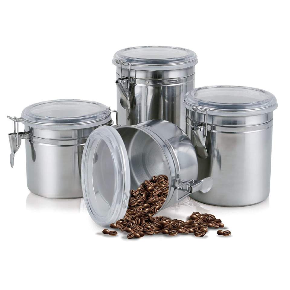 ชุดกระป๋องกาแฟสแตนเลส4ชิ้นสำหรับเก็บอาหารที่ปิดด้วยสุญญากาศสุญญากาศกล่องโลหะสีเงินสำหรับเก็บ