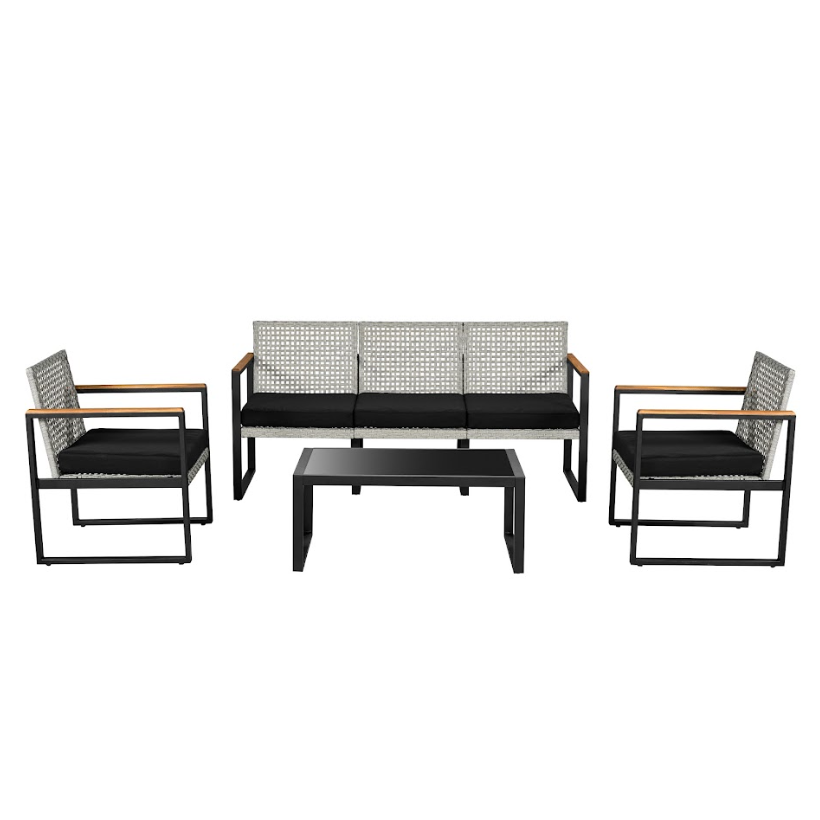 ชุดสนทนา4ชิ้นแบบสบายสำหรับลานบ้านสำหรับกลางแจ้งและสวนเฟอร์นิเจอร์สำหรับโรงแรมร้านอาหารโรงเรียนบ้านไร่