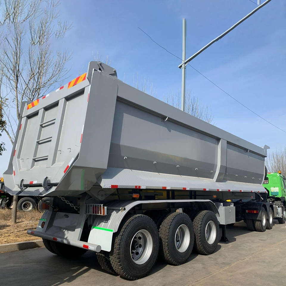 รถดัมพ์เหล็กกึ่งพ่วง40ตัน50ตันรถเทรลเลอร์ไฮดรอลิกดถีบรถขนดิน3เพลาสำหรับรถบรรทุกรถแทรกเตอร์สำหรับทำเหมือง