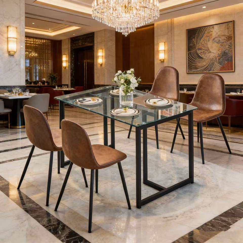 โต๊ะอาหารทรงสี่เหลี่ยมทันสมัย ขาสีดำ ท็อปกระจกนิรภัยขนาดใหญ่ 47 นิ้ว ลดราคาพิเศษ