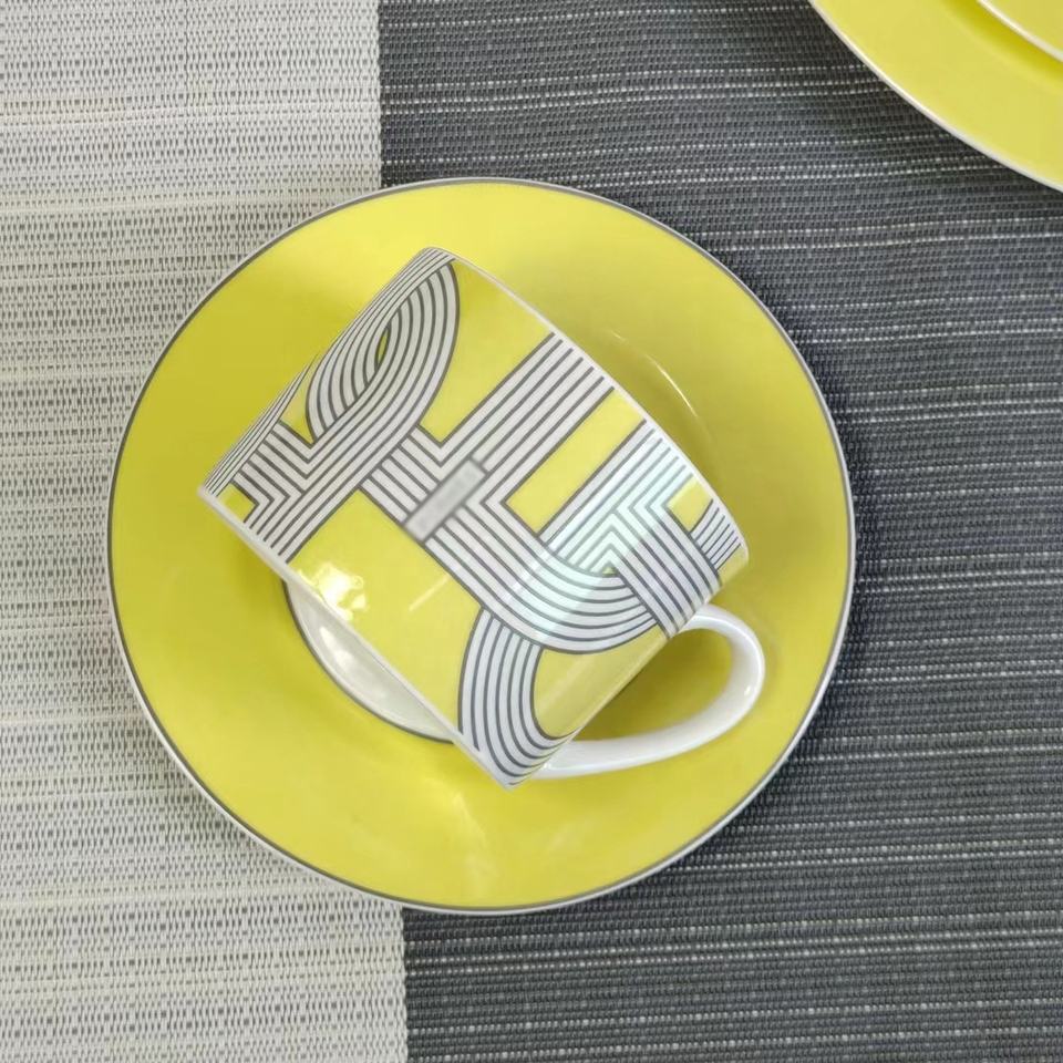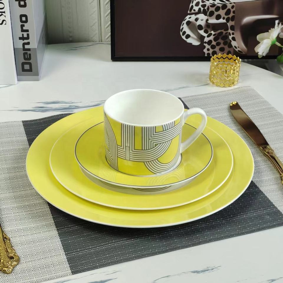 ชุดจานเซรามิกพร้อมกล่องของขวัญชุดรับประทานอาหารรันเวย์สีเหลืองหรูหราสไตล์นอร์ดิก4ชิ้น