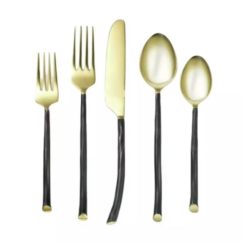 ชุดช้อนส้อมสแตนเลส4ชิ้นด้ามค้อนสีทองมีดส้อมช้อนส้อมมีดเสิร์ฟสำหรับห้องครัวและงานแต่งงาน