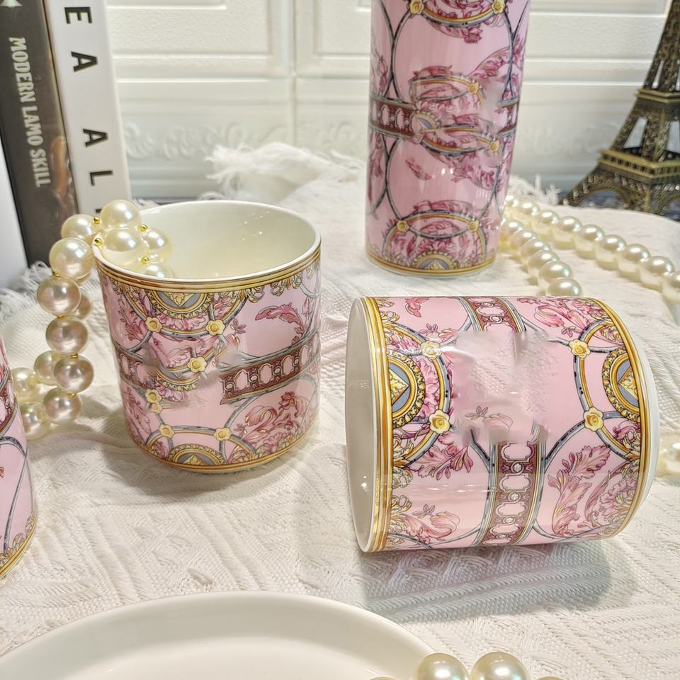 เซ็ตเซรามิกสำหรับคู่แต่งงานสุดหรู5ชิ้นชุดห้องน้ำลายครามสีชมพูตะวันตกและสีเขียว