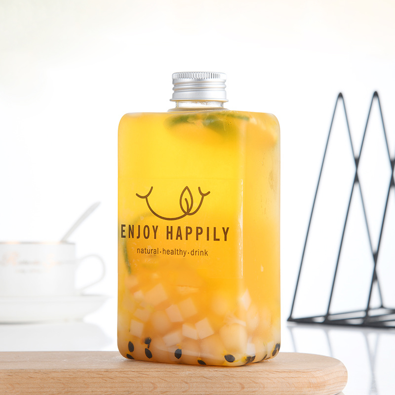 ขวดพลาสติกทรงเหลี่ยมขนาด 500 มล. เกรดสำหรับอาหาร สำหรับนม เครื่องดื่ม ชานมไข่มุก น้ำผลไม้ คอมบูชา ลดราคา