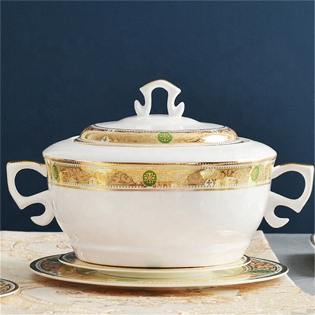 ชุดถ้วยชามเซรามิกสำหรับอาหารค่ำถือในบ้าน60ชิ้นสีทองราชวงศ์ตะวันตกแบบดั้งเดิม