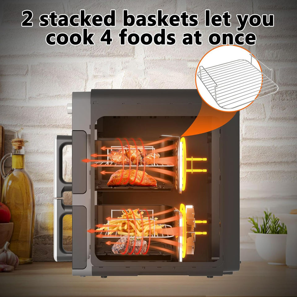 ไม่ติดพื้นผิวการปรุงอาหาร, การควบคุมอุณหภูมิที่ปรับได้, ถอดออกน้ำมันคอนเทนเนอร์, การป้องกันความร้อนสูงเกินไป, ด้วยแสงไฟ, ด้วยหน้าต่างการสังเกต, จอแสดงผล LCDฟังก์ชัน