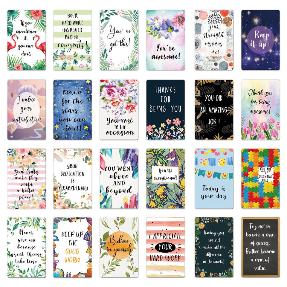 ขายด่วน ชุดการ์ดอวยพรขนาดเล็ก 72 ชิ้น/ชุด คำคมสร้างแรงบันดาลใจภาษาอังกฤษ การ์ดอวยพรส่วนตัว การ์ดขอบคุณขนาดเล็กสำหรับธุรกิจขนาดเล็ก
