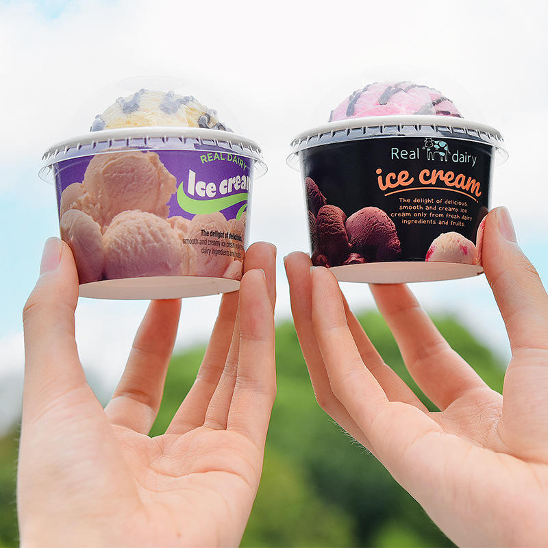ถ้วยกระดาษไอศกรีมขนาด8ออนซ์ถ้วยกระดาษแบบใช้แล้วทิ้งสำหรับโยเกิร์ตแช่แข็ง