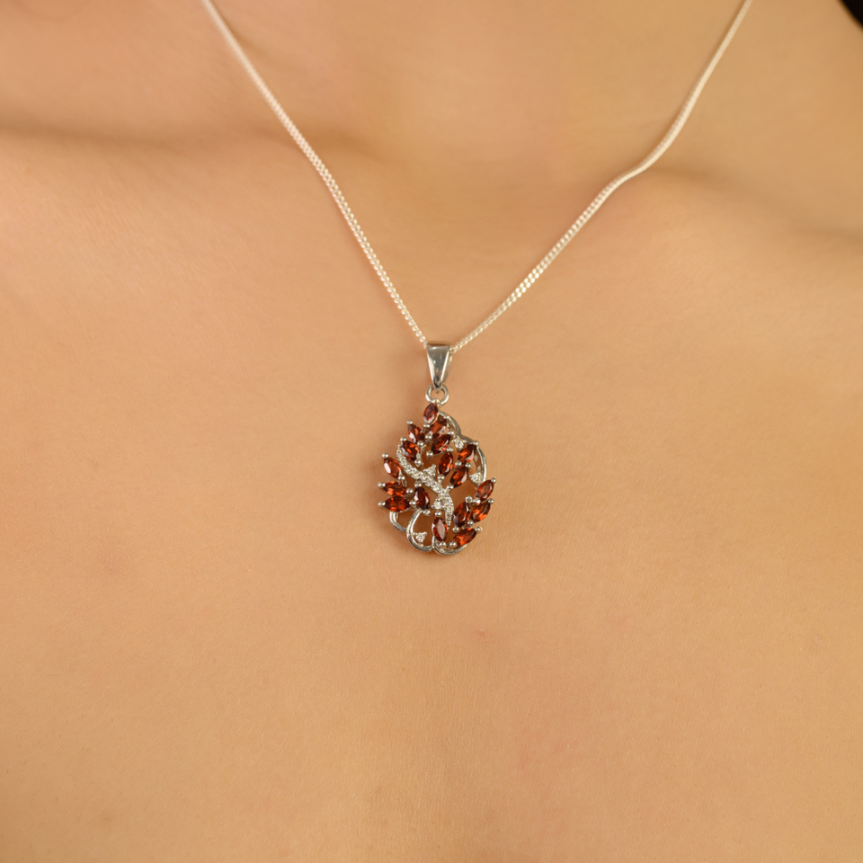 ลดราคาพิเศษ! จี้เงินแท้ 925 ประดับพลอยโกเมนธรรมชาติทรงมาร์คีส์ ดีไซน์รูปใบไม้ เครื่องประดับคุณภาพสูง รับผลิตแบบ OEM ODM