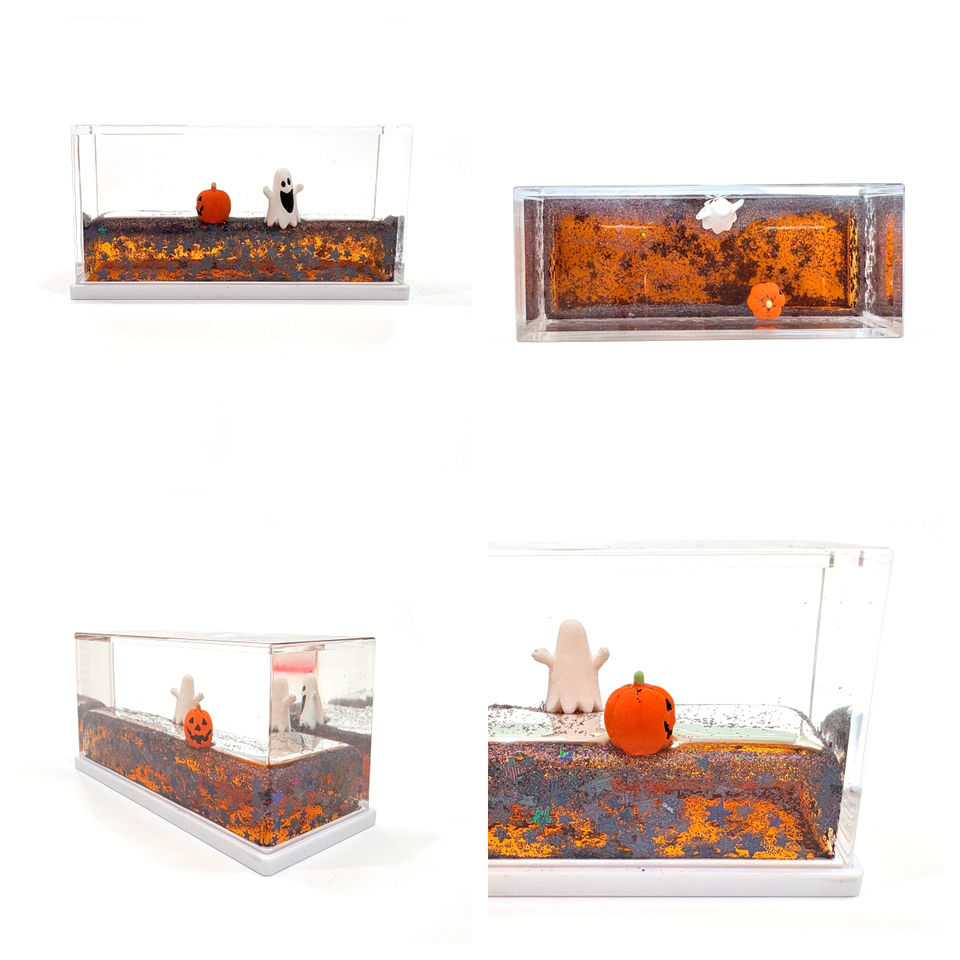 ของตกแต่งอะคริลิคแบบลอยน้ำลายฟักทองฮาโลวีน ประดับกลิตเตอร์ ของตกแต่งโต๊ะทำงาน ลดราคาพิเศษ